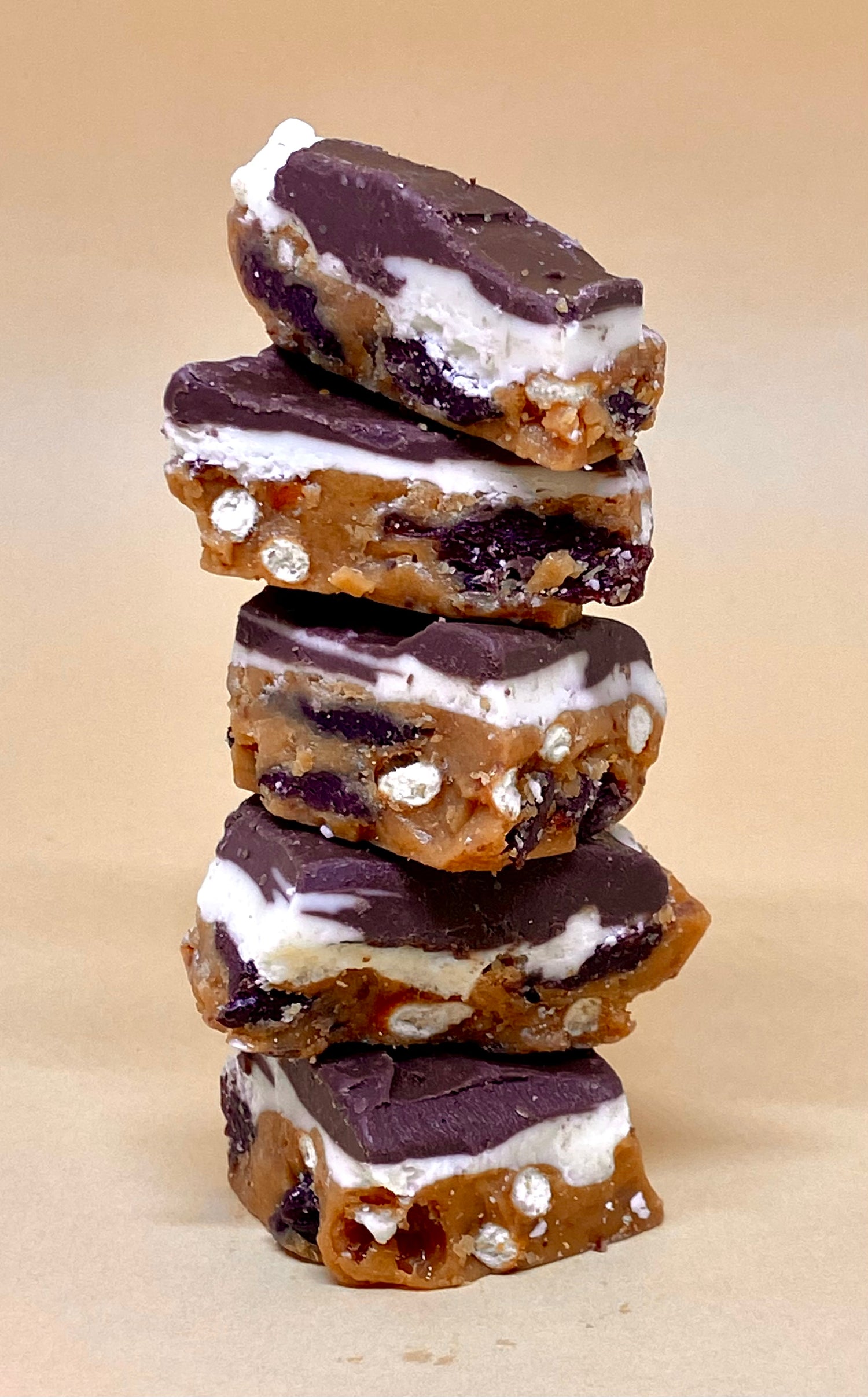Dee Dee's Blend is made with plump dried cherries and salty pretzels, then covered with a thick layer of white chocolate, then a thick layer of dark.