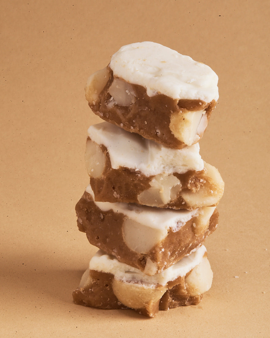 Our White Chocolate Macadamia Brittle is absolutely irresistible! Fresh, whole, roasted and salted macadamias are folded into our rich buttery brittle base, then topped with a generous layer of delicious white chocolate. White Chocolate Macadamia Brittle is the combination for the sweet and salty lover, with just the right amount of crunch.